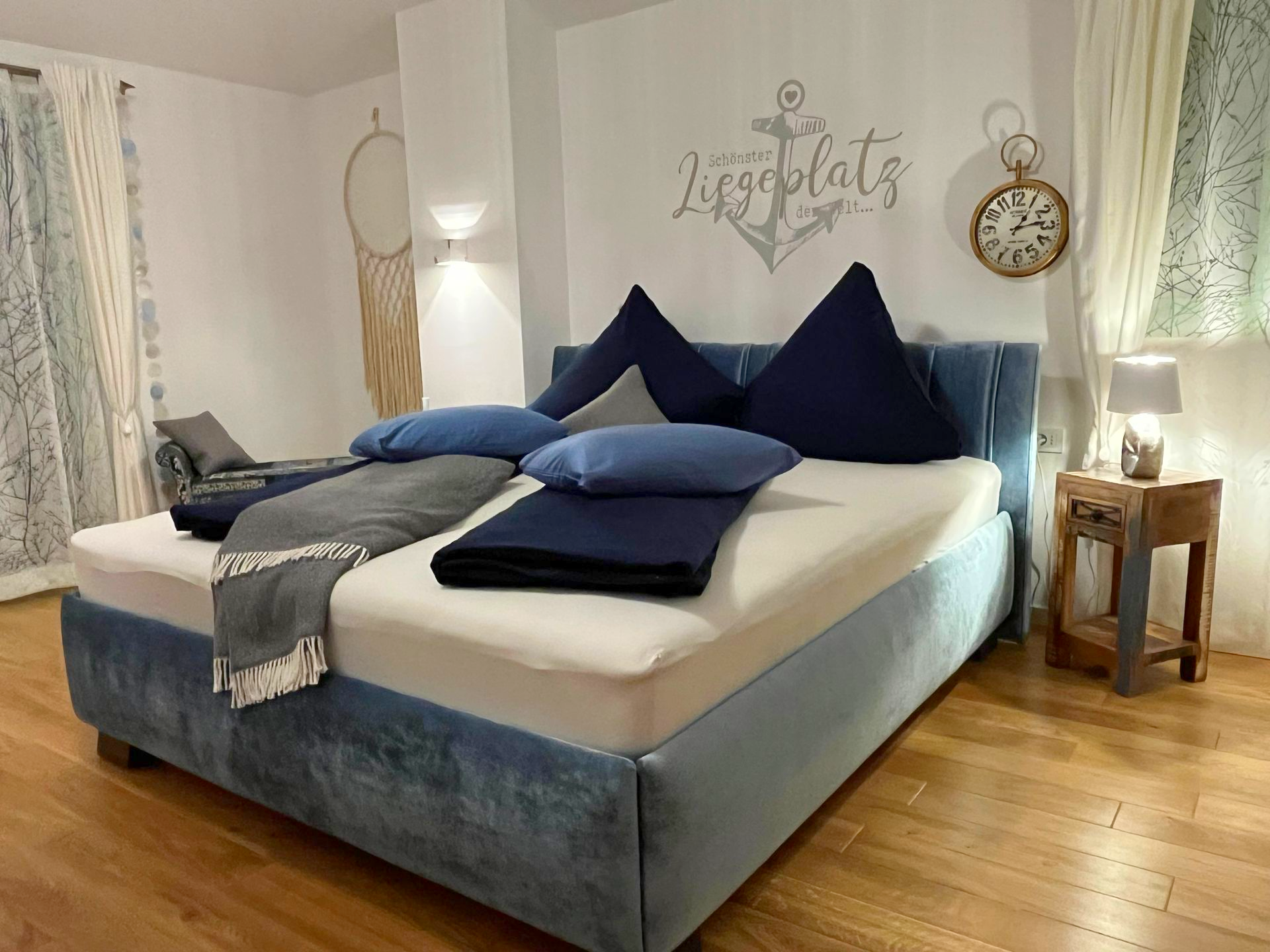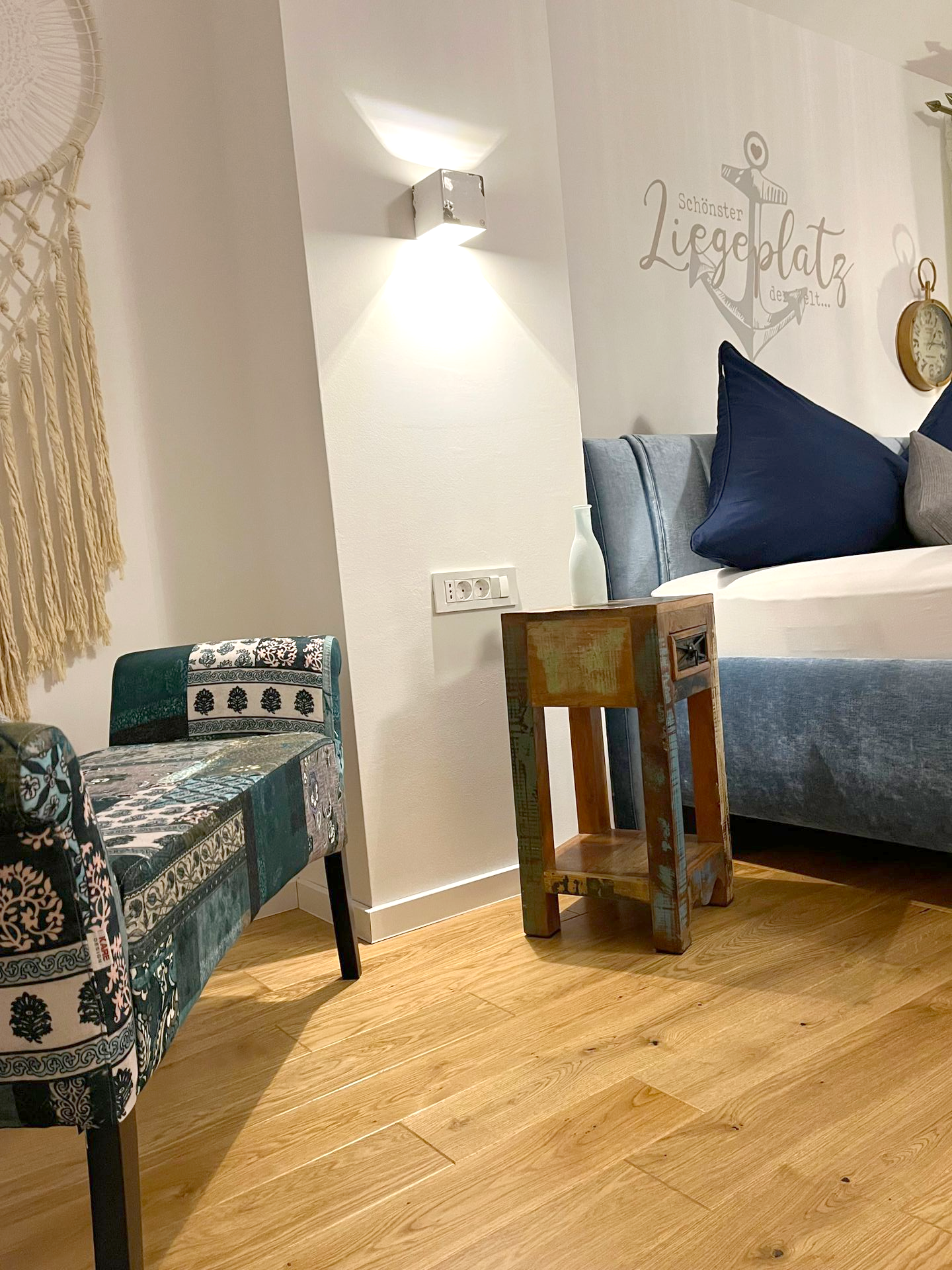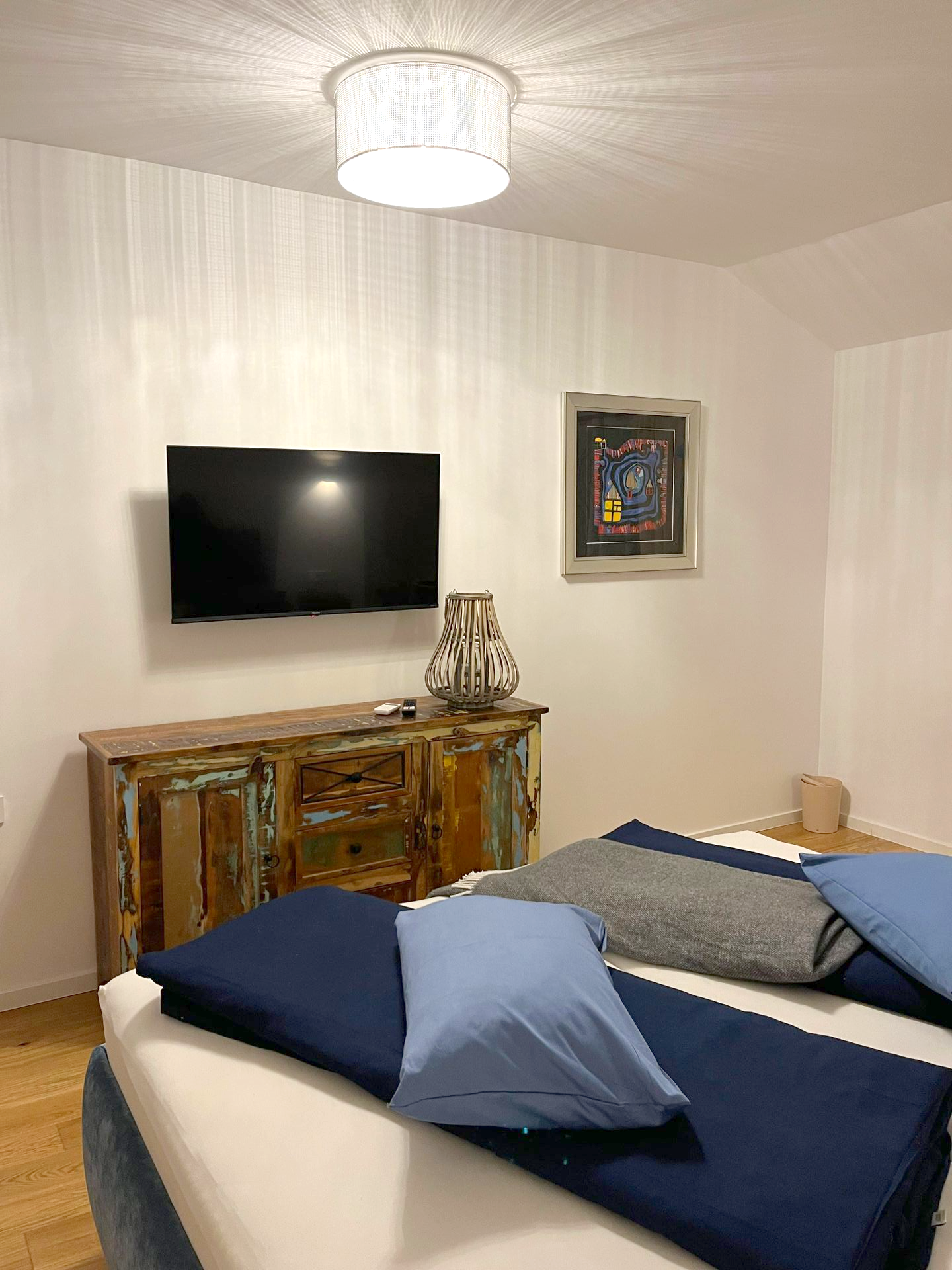 - Master Zimmer blue: Doppelbett 1,8 x 2 m mit en-suite Badezimmer
