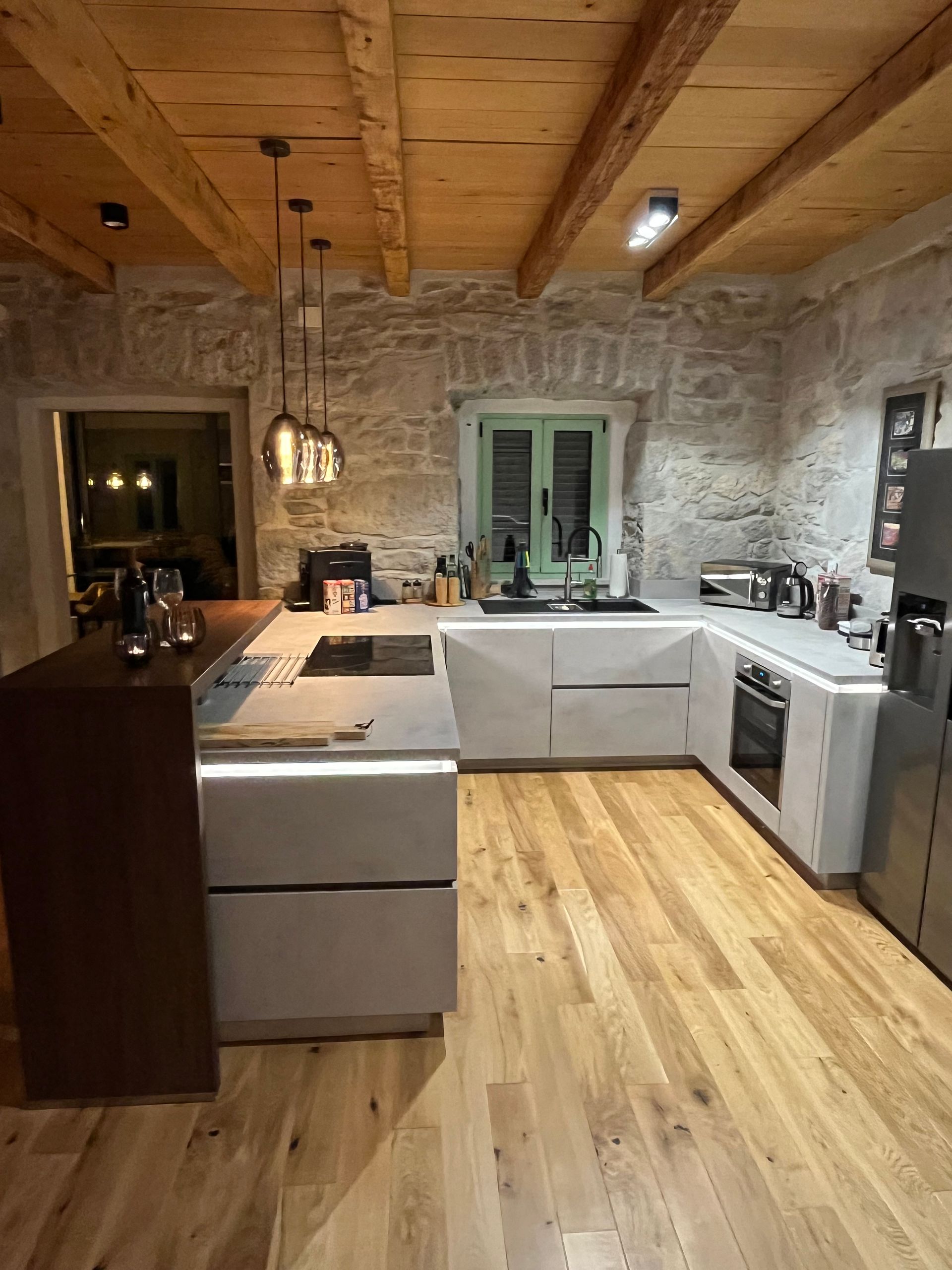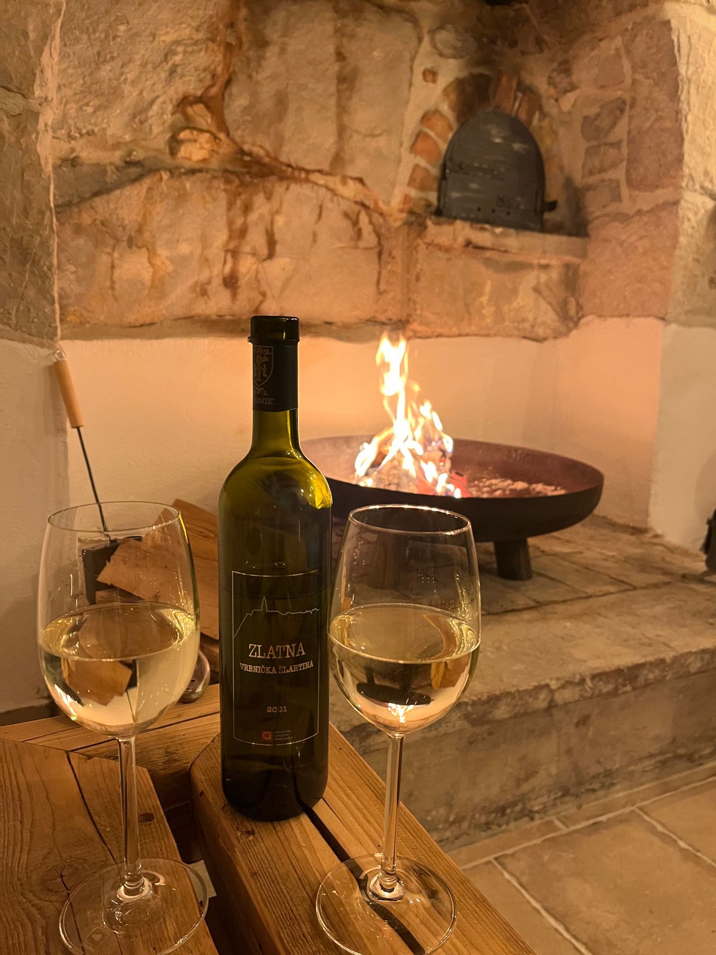 mit offener Feuerstelle lädt zum gemütlichen Zusammensein mit Freunden ein. Genießen Sie Ihren Moment bei einem Gläschen Wein aus der Region Krk.