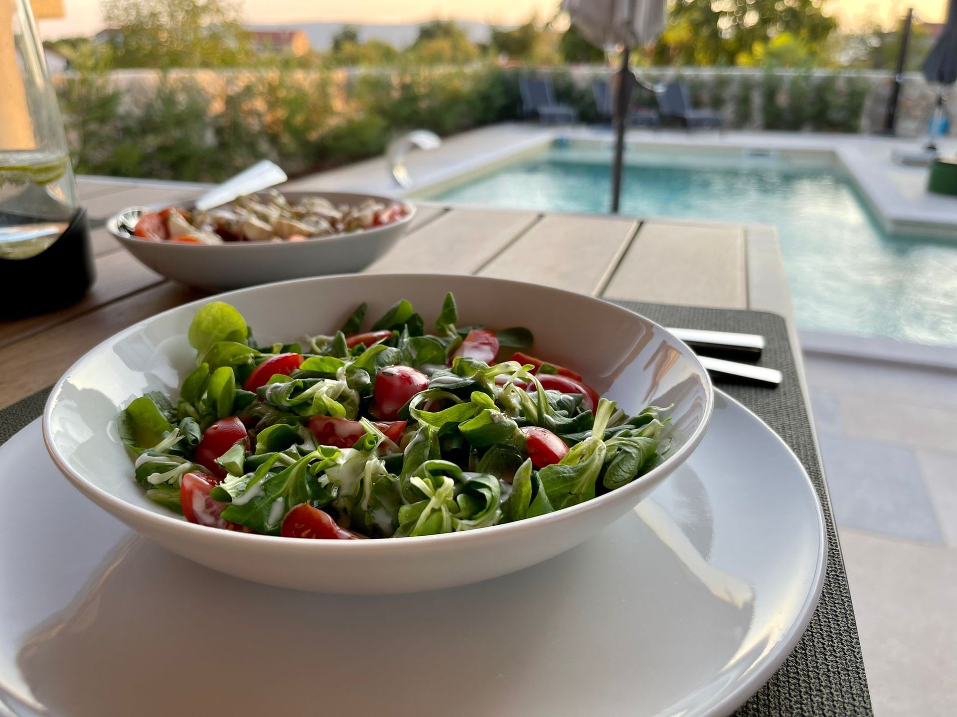 - großzügiger Essbereich im Anbau für 8 Personen mit Blick auf den Pool